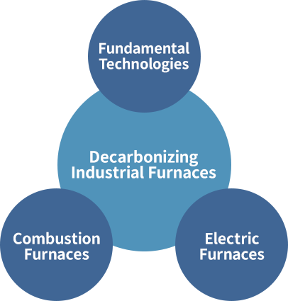 DITS is driving the developments of the combustion furnaces with carbon free fuels and the electric furnaces with higher efficiency. The fundamental technologies are also studied to support these developments of furnaces. DITS is promoting the social implementation and widespread adoption of these technologies in the society.